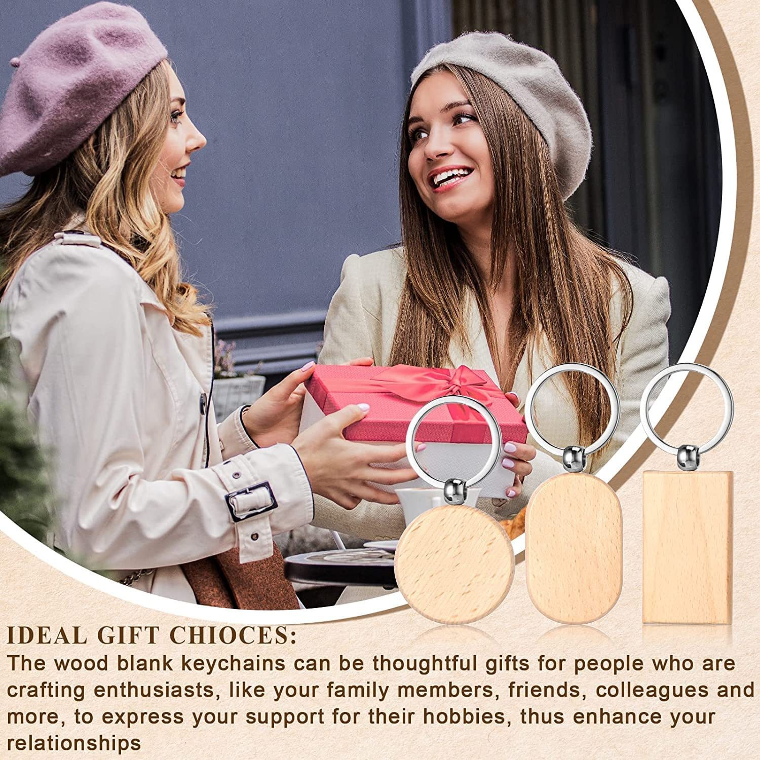 Hand Engraved Beech Wood Keychain with Heartfelt Message Laser Custom Logo Unique Wooden Pendant Personalized Gift